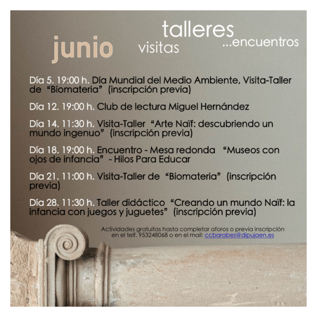 Sala de Arte Naïf; Centro Cultural Baños Árabes- Palacio de Villardompardo. Actividad gratuita previa inscripción en el telf. 953248068 o en el email: ccbarabes@dipuajen.es