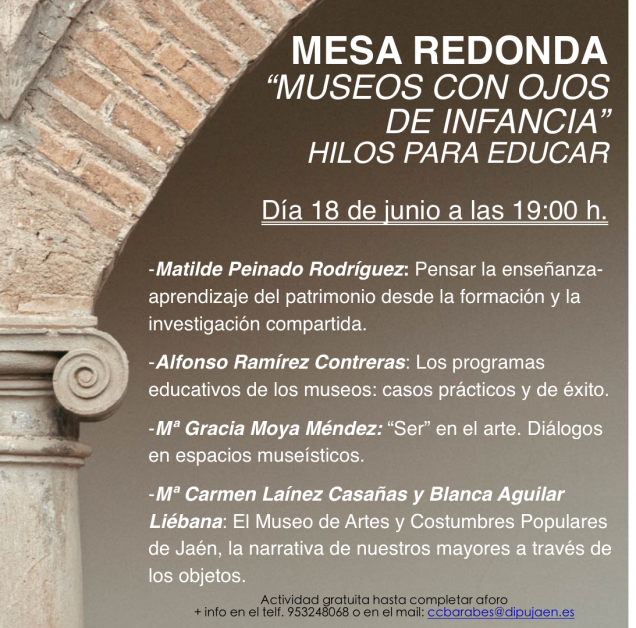 MESA REDONDA: “MUSEOS CON OJOS DE INFANCIA” HILOS PARA EDUCAR Día 18 de junio a las 19:00 h. -Matilde Peinado Rodríguez: Pensar la enseñanza- aprendizaje del patrimonio desde la formación y la investigación compartida. -Alfonso Ramírez Contreras: Los programas educativos de los museos: casos prácticos y de éxito. -Mª Gracia Moya Méndez: “Ser” en el […]