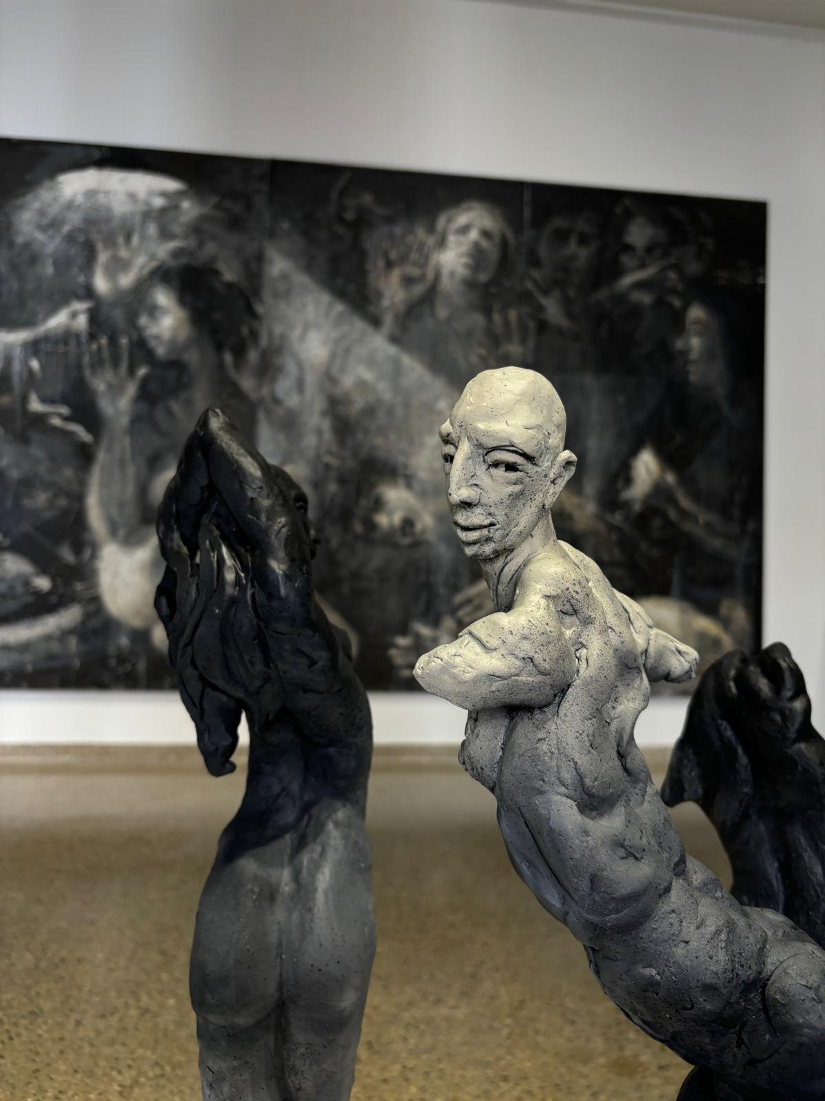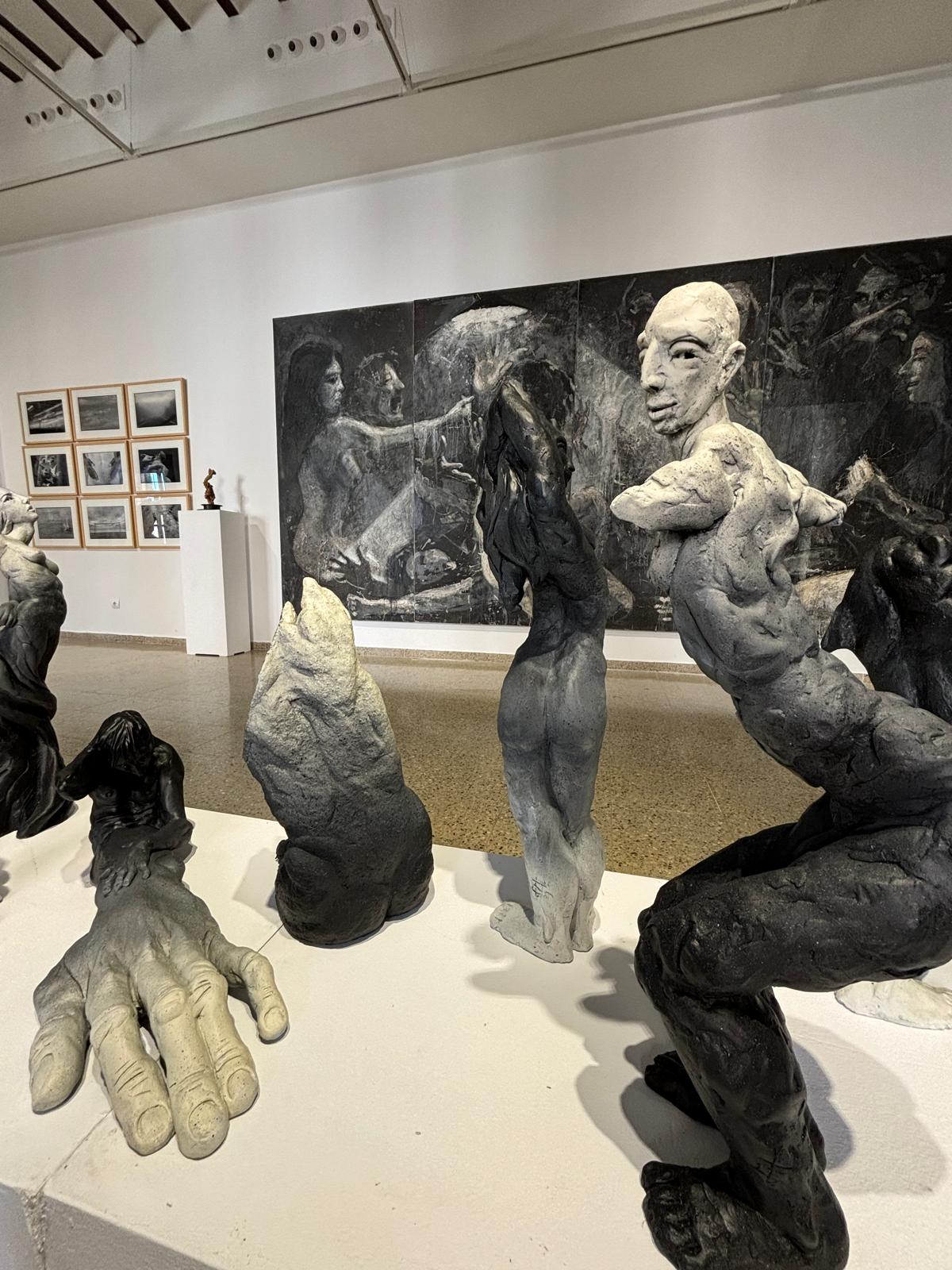 En esta exposición, la escultura, la fotografía y la pintura no ilustran, sino que tensionan. Sánchez Montalbán trabaja desde la fotografía como territorio inestable, una estética del tránsito; Montoya moldea lo informe: raíces, barro, ramas que laten; Peralbo fragmenta la figura pictórica, la hace ruina, sombra y persistencia.