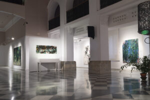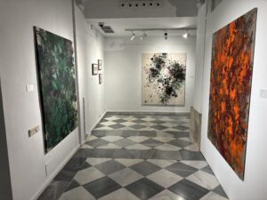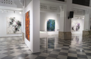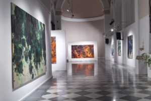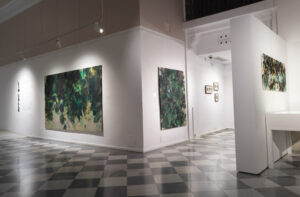 Naturaleza entreabierta es una exposición de la artista de Lin Calle, comisariada por el escritor Óscar Curieses. La muestra explora la visión del paisaje natural a través de los vasos comunicantes entre lo figurativo y la abstracción. Esta joven artista de origen chino, radicada en Madrid, ha expresado desde los inicios de su trayectoria un notable y constante interés por lo matérico de ciertos elementos presentes en la naturaleza tales como la vegetación y sus espesuras, los senderos entreabiertos en el bosque, las texturas de los suelos recubiertos de hojarasca o las montañas revestidas de ramajes y arboledas. Esa inclinación de la artista hacia la materialidad de naturaleza tiene que ver con la singularidad de los colores y las formas, pero también con la invocación de una belleza extrañada que cuestiona nuestra percepción habitual. Ese mirar, tan lúcido y particular de Lin Calle, une y diluye la subjetividad con la objetividad, y nos ofrece una percepción renovada de los elementos naturales que no excluye la sombra, lo caótico y el misterio presente en todo paisaje. La mancha y el color en expansión son quizá los elementos primordiales de su trabajo. Como si se tratase de un embrión, todo parte de ahí y posibilita el resto de la imagen, que se concreta a través de capas y formas hasta cierto punto reconocibles.